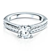 14 karat white gold Harout RTM semi-mounting with round brilliant cut diamonds weighing approximately 1/3 carat TW. Shown with a center diamond for illustration. Holds a 1 carat round center stone. Matching band item number is 1774289. Available On-Line and Select Helzberg Store Locations. Click here to find a location near you..